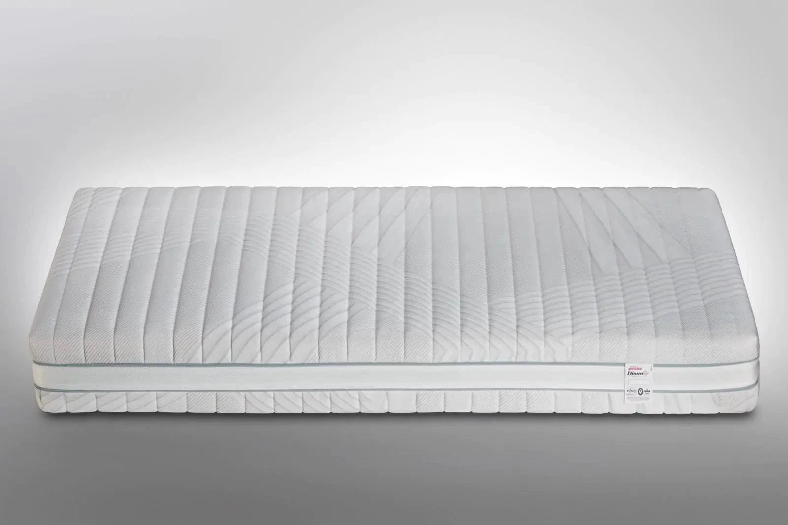 Модел Диона е двулицев матрак с отлични показатели. Има ядро от високоеластична пяна и еластична пяна. От страната на вискоеластичната пяна има слой Memory пяна за повече мекота и комфорт. Термоеластичните качества на Memory пяната позволяват да „запомня“ формата на тялото. Когато се затопли, тя омеква и потъва в точките с по-голям натиск, обгръщайки изцяло лежащото тяло. Това разпределя тежестта равномерно върху повърхността и облекчава напрежението в отделните области. Спомага за поддържането на гръбнака в правилна позиция, което гарантира цялостно отпускане на тялото. Ядрото на модел Диона е облечено в сваляем калъф с цип от висококачествен текстил с антибактериална обработка, който е лесен за поддръжка.
