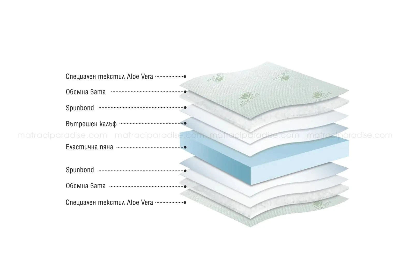Състав на матрака: специален текстил Aloe Vera, еластична пяна, цип