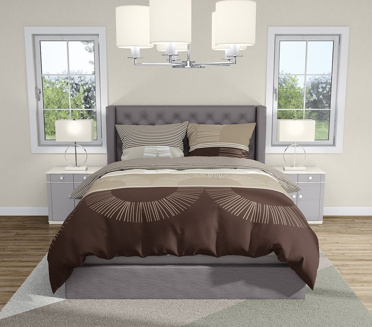 - Спално Бельо "Мокачино" е стилен избор за вашата спалня. Десенът е красива комбинация между цветове от кафявата гама, в допълнение с модернистични фигурални мотиви. Подходящ подарък за младежи и мъже!