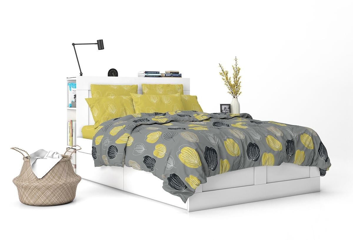 Спално Бельо Сиво и Жълто ГРЕЙС, 100% Памук Ранфорс, 3 части