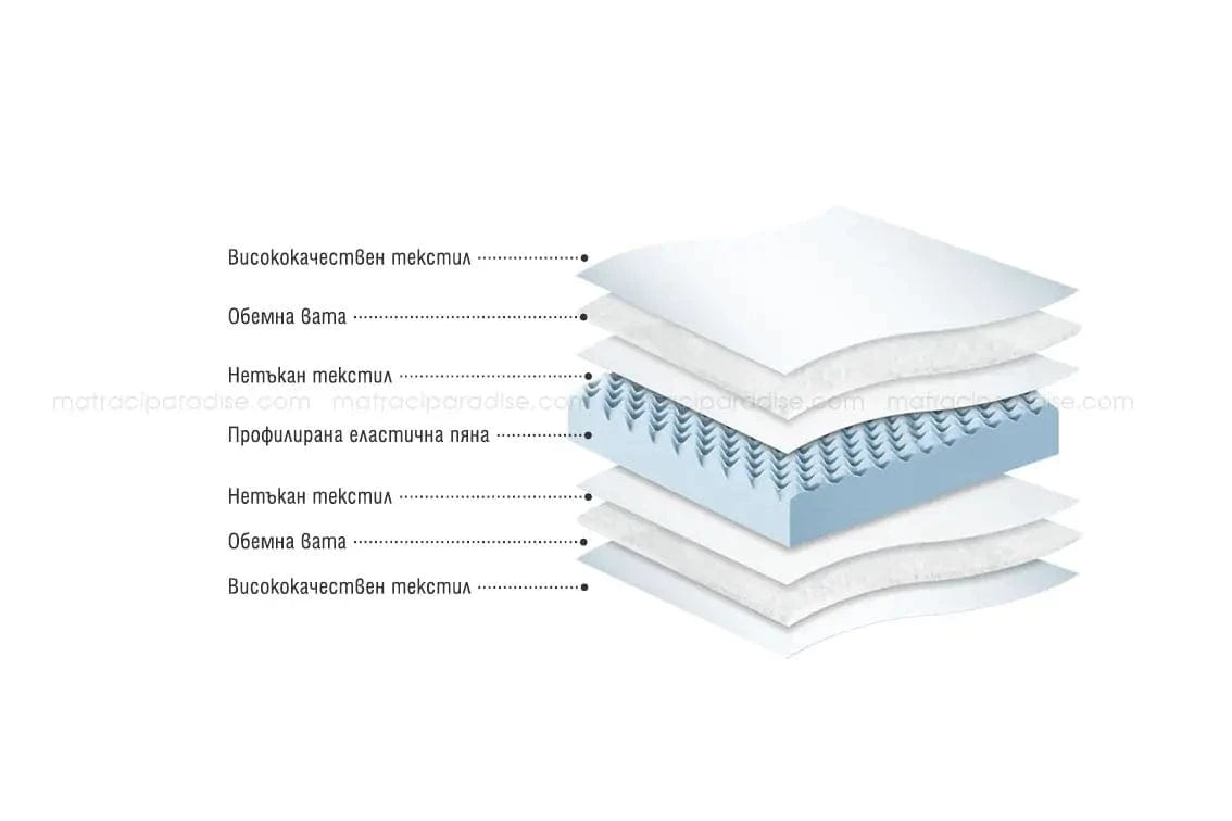 Състав на топ матрака: висококачествен капитониран текстил, профилирана еластична пяна