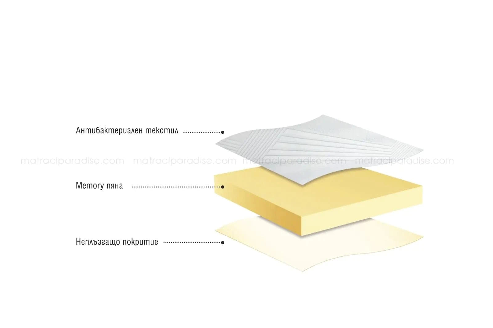 Състав на топер мемори: антибактериален текстил, Memory пяна, неплъзгащо покритие