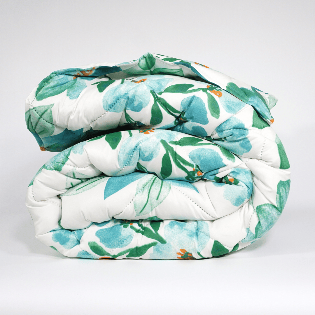 Материя и конструкция: микрофибърен лицев плат и капитониран пълнеж — равномерно разпределена вата, която гарантира стабилна изолация и топлинна защита.