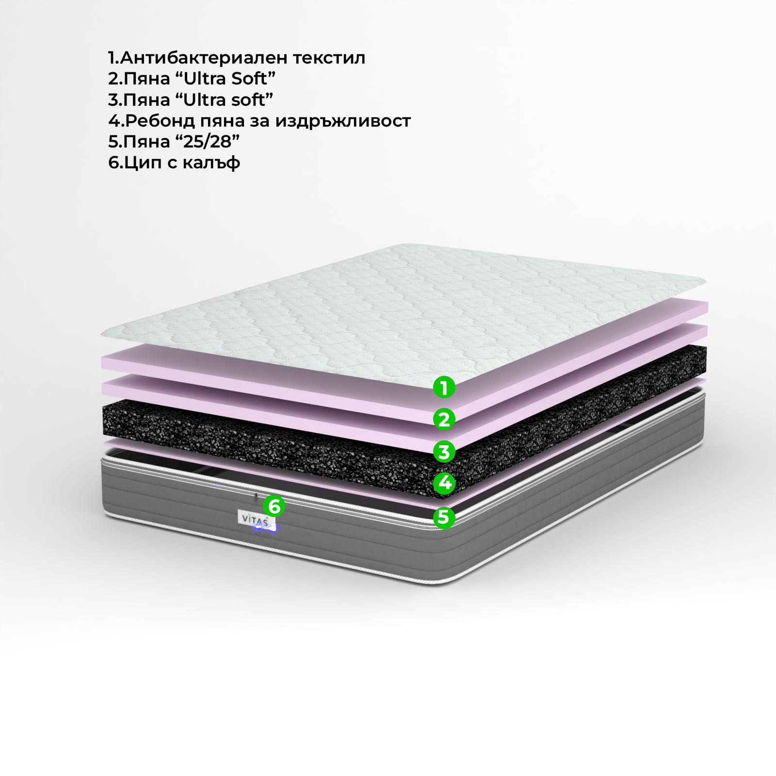 - Пяна "Ultra SOFT" : Перфектно се адаптира към формата на тялото, намалява натиска и подобрява комфорта.